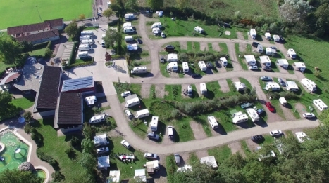 Erleben Sie das Klingbachtal aus der Vogelperspektive und gewinnen Sie einen Eindruck von Campingplatz und Freibad.